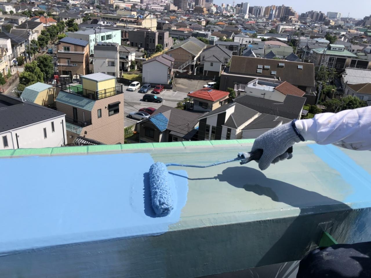 今日は笠木のウレタン防水をしました!気温が高くて熱中症には気をつけなければ😅